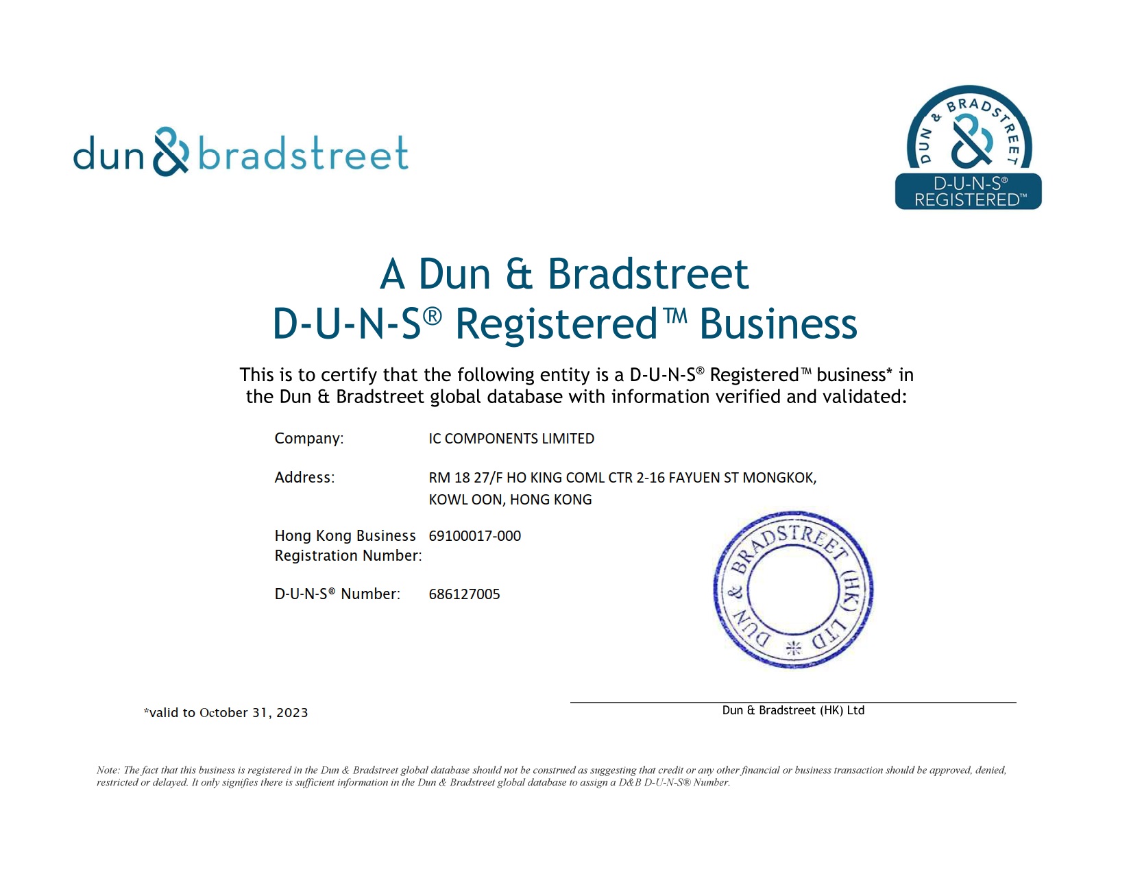 Check certificate - D-U-N-S certification - We are dun & bradstreet Membership, D-U-N-S Number: 686127005